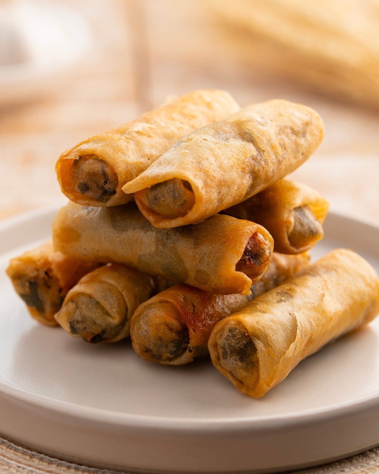 Air fry at 400°F for 6 minutes. Flip the egg rolls, then cook for 5–6 minutes until golden and crispy.